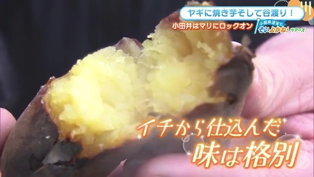 完成した焼き芋を味わったリポーターは「うまい。熱いけど甘々のスイーツやで、これ」と絶賛。「薪割りまで今日は2人でやって、自分の焚き火ですので、これ」と、一から作り上げた達成感も味わうことができます。