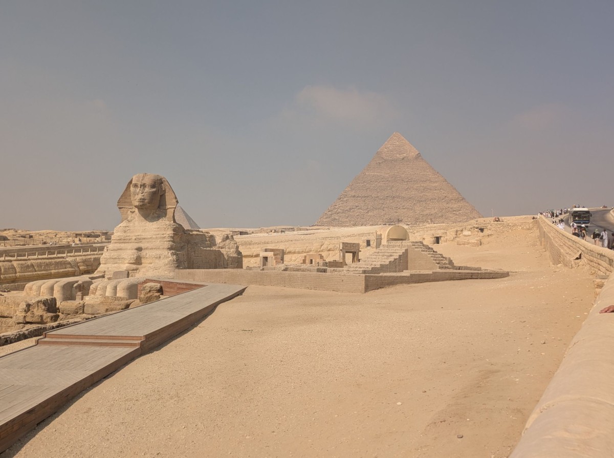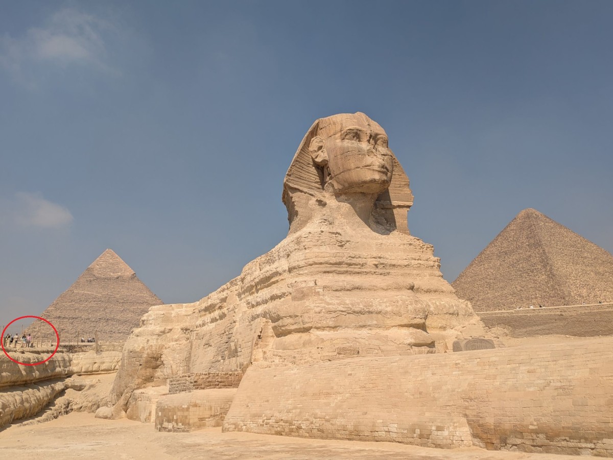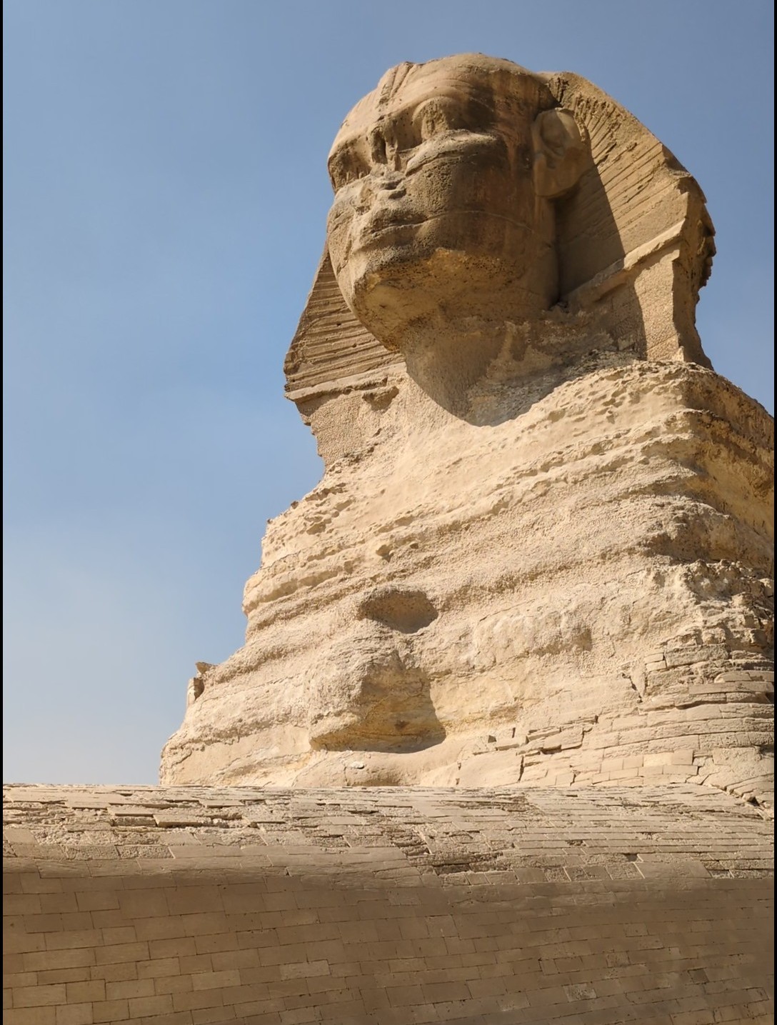 スフィンクスの顔は、過去に壊されたとされ(自然の風化も)、鼻が欠けた状態です。