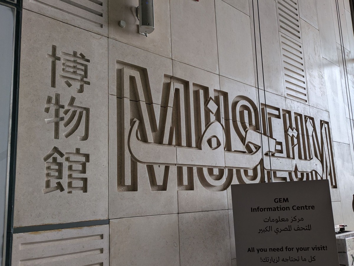 大エジプト博物館建設にあたっては、日本政府が莫大な資金支援と遺物の保存技術の提供を行っているため、英語とアラビア語、そしてなんと日本語で「博物館」の表示があります。
