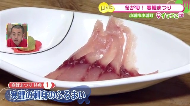 寒鯉祭り期間中の特典として、「寒鯉のお刺身」をサービスで提供するそうです。