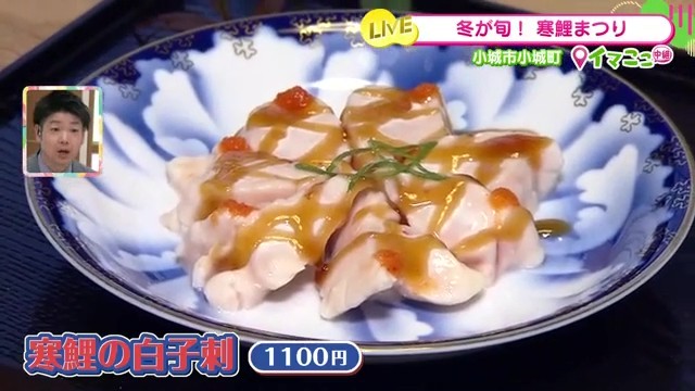 寒鯉祭り期間中のオリジナルメニューとして、「寒鯉の白子刺」が登場。冬場の白子は、ふっくらして甘みが増しているそうです。