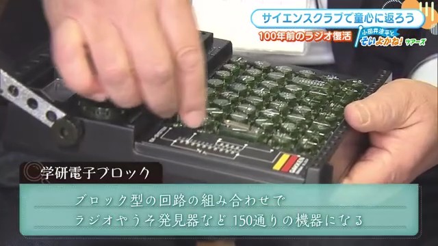 パーツを組み合わせることで、ラジオなどさまざまな電子機器を作ることができます。「ブロックではめ替えることでラジオに変わったりします」と、その仕組みを分かりやすく説明してくださいました。