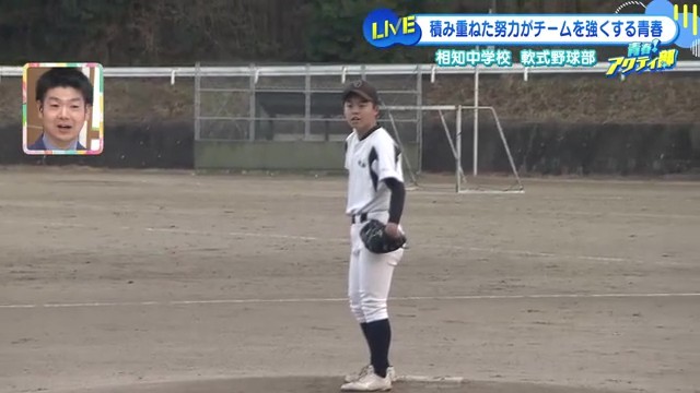 練習の最後には、特別な対戦が実現しました。3年生OBとして練習に参加していた井上琉生さんは、昨年チームを全国大会まで導いたエースピッチャーです。副キャプテンたちは「伸びのあるストレートと多彩な変化球が武器です。リポーターにバッターとして対戦してほしい」と提案しました。