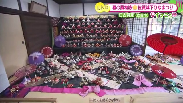 今年のテーマは「春色さんぽ」。佐賀市内12会場に約5000体の雛人形が展示され、城下町が華やかな雛の世界に包まれています。