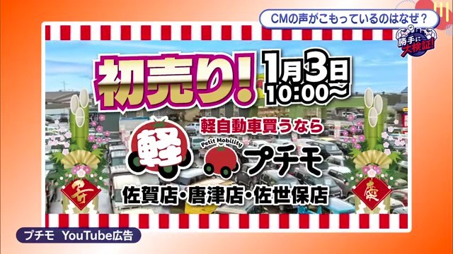 唐津市で軽自動車を中心に未使用車・中古車を扱う「プチモ唐津店」。同店では地上波とYouTubeでそれぞれ異なるCMを放送していますが、YouTubeのCMだけ音がこもって聞こえるという現象が起きていました。
