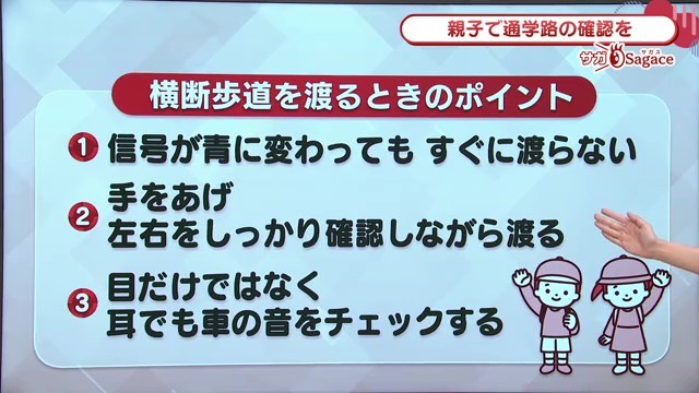 佐賀市生活安全課の栗山さんはこう語ります。「小学校に上がると一人で歩く機会が増えます。自分の目と耳で危険がないかを確認して渡れるように指導していきたい。子どもたちが事故に遭うことなく学校生活を送ってほしい」
