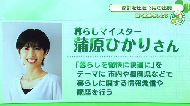 「暮らしを愉快に快適に」をテーマに、佐賀市内や福岡県などで暮らしに関する情報発信や講座を行う暮らしマイスターの蒲原ひかりさん。3月の家計を助ける実践的なアドバイスを教えてもらいました。