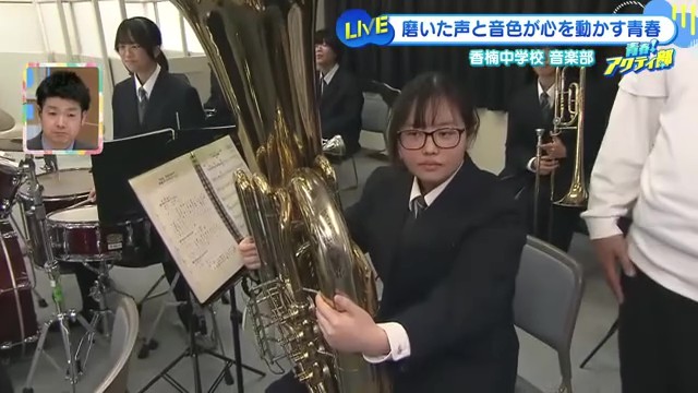 生徒会が紹介してくれた学校の魅力のひとつが購買部のナンバーワン人気商品「炙り明太フランスパン」。お昼前には売り切れてしまうほどの人気ぶりで、学校のにぎやかな日常が伝わってきます。そんな香楠中学校で今最も注目されているのが音楽部です。