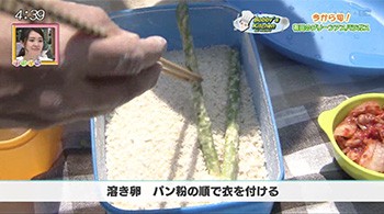 アスパラガス 20本/小麦粉 1/3カップ/卵 2個/塩 小さじ1/カイエンペッパー 小さじ1/4/揚げ油 適量