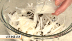 TOP 記事一覧 レシピ 甘酒ぜんざいと甘酒ささっと漬け レシピ recipe 2016.03.04 甘酒ぜんざいと甘酒ささっと漬け 10分ほどで、甘酒ぜんざいと甘酒ささっと漬けの2品。甘酒は米麹と米を原料とした発酵食品で、風邪の予防対策だけでなく、夏バテ・腸内環境の改善・肥満抑制効果・ダイエットの他に、頭皮を若返らせ美しい髪を作ってくれるとか?冬はもちろん、冷やすと、オールシーズンいただけます。 材料(2人分) <甘酒ぜんざい> 甘酒 400cc/もち 2個 ゆであずき 大さじ4 <甘酒ささっと漬け> 大根 10cm/塩昆布 20g 塩 小さじ1/甘酒 大さじ3 <甘酒ぜんざい> 甘酒を火にかける ひと煮立ちしたら、焼いたもちを入れる 器に盛りつけて、ゆであずきをのせる <甘酒ささと漬け> 大根はよく洗って皮のまま千切りにする 塩をふって混ぜる 軽く絞って、塩昆布を混ぜる 甘酒を混ぜる 甘酒ぜんざいと甘酒ささっと漬け TAG LIST #お野菜料理 #スイーツ(レシピ) #かちかちPress 前の記事 一覧に戻る 次の記事 RECOMMEND