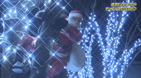 まずは、どういう風にサンタが出没しているのかを捜索します!街中を捜索してみると、お店の壁をよじ登っているサンタや煙突を登るサンタなど、至るところにサンタの姿を確認することができました。