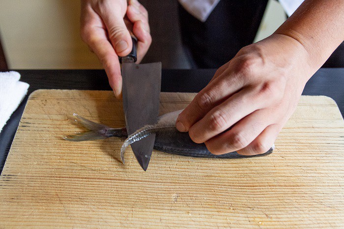 - 魚をさばく際は、骨に沿って切られ、身が骨から取られているという魚の気持ちをイメージする。