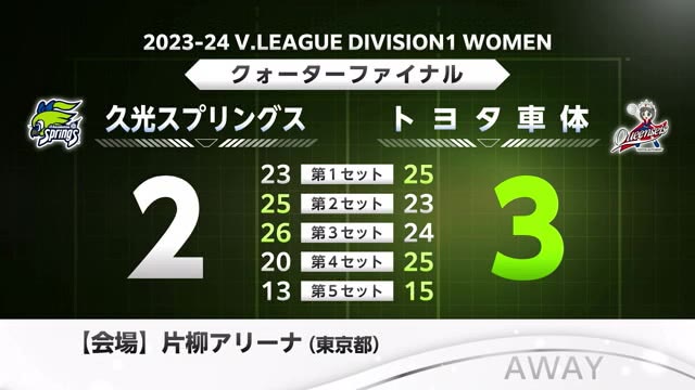 V1プレーオフ・久光スプリングス トヨタ車体に惜敗 3月2日、5位決定戦へ