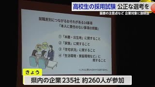 居住地や親の職業などによって左右されるようなことがない公正な選考をしてもらおうと、参加した企業に対し愛読書や尊敬する人など面接で聞いてはいけない質問などについて説明がありました。