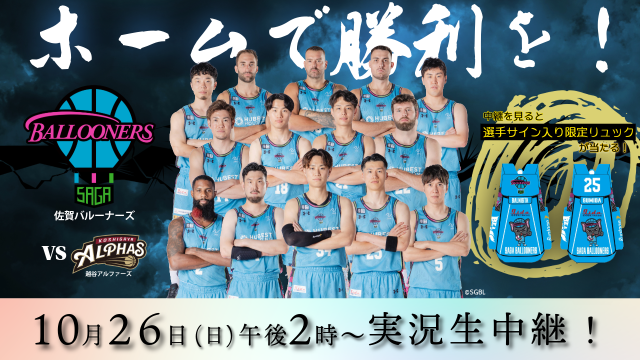 B1リーグ第5節GAME2 佐賀バルーナーズ×越谷アルファーズの試合を実況生中継!10月最後の試合を勝利で飾れるか?視聴者プレゼント企画も実施!