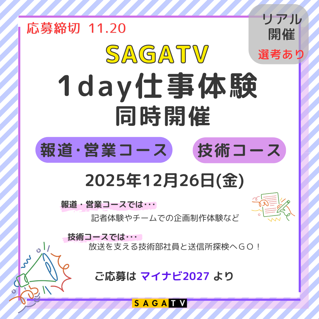 \2025年12月26日開催/ サガテレビ1day仕事体験(報道・営業コース/技術コース)のご案内です。