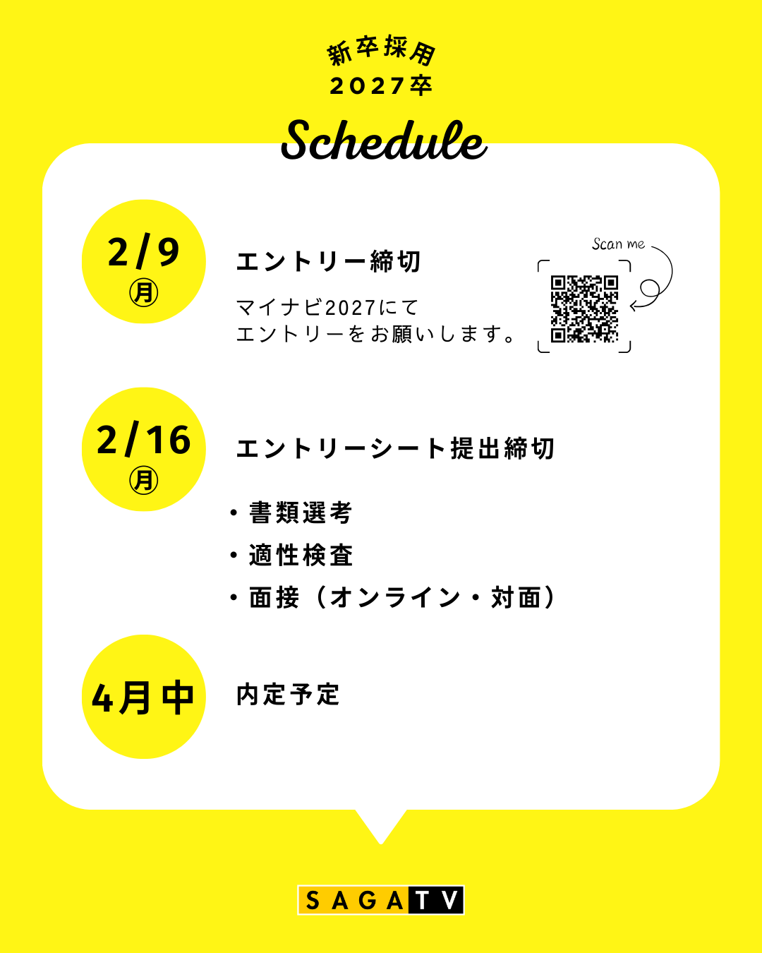 「サガテレビ2027年新卒採用選考受付開始」のお知らせです。